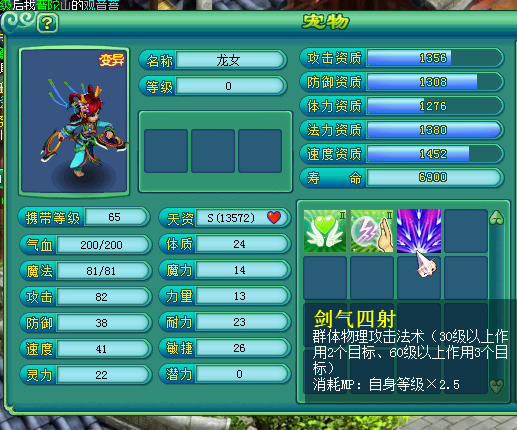 神武龙女宝宝攻资1488速度1500+,能不能用了,还有成长红心喝别的心后期差多少,个 要是在洗个什么资质好但是紫心以下打能用吗 点击展开 匿名用户 2015-08-24 13:54 推荐回答 变异龙女满攻资是1560,速厘栋眠资也是今称1524以上,你不追求极品,这航竞个就能用了。 抄楠楠_pOtk 2015-08-25 11:04 宝宝知道提示您:回答为网友贡献,仅供参考。 相关问题 神武龙女宝宝会什么技能,攻资多少 神武游戏的这个龙女 我该怎么办??可以领悟剑气技能么?我怎么给这个宝宝炼化攻资呢? 神武龙女工资1452防御1284体力1414发你1322速度1309 怎么加点 宝宝行吗?