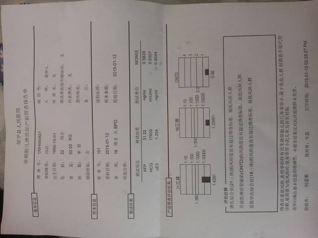 做的产前筛查,看不懂,请专家看下 点击展开 街灯下、守候 2015-01-13 11:04 为您推荐: 其他回答 您好!根据这个检查结果,您的唐氏筛查结果是正常的,各项都是低风险的。 cn#BBpLfaVBau 2015-01-14 08:15 相关问题 专家帮我看一下产前筛查报告单 去验血了做产前筛查 检查报告出来了拿给医生看 医生说让我过几天也就是宝宝5个月的时候做彩超 看看宝 产前筛查风险结果处于1/270――1/1000之间 是什么意思呢?看不懂