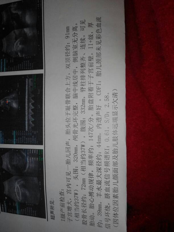 懂的宝妈帮我看一下宝宝怎么样,有多重啦 懂的宝妈帮我看一下宝宝怎么样,有多重啦😊😊 点击展开 187*****859_cwb4 2015-01-10 20:27 为您推荐: 其他回答 你好,看胎儿的大小已经接近足月了,体重大概是在6斤左右的,胎心羊水正常,脐血流测量值正常,祝你生产顺利吧。 文斯6 2015-01-10 21:18 哦!那就在医院等生吧! 紫色馨宇 2015-01-10 20:59 B超单上有! 紫色馨宇 2015-01-10 20:57 胎位正吗?羊水清吗? 紫色馨宇 2015-01-10 20:56 住医院放心点! 紫色馨宇 2015-01-10 20:54 加载更多 相关问题 宝妈们帮忙看看宝宝有多重多长了? 宝妈们谁帮忙看下这有多重了吗?感谢