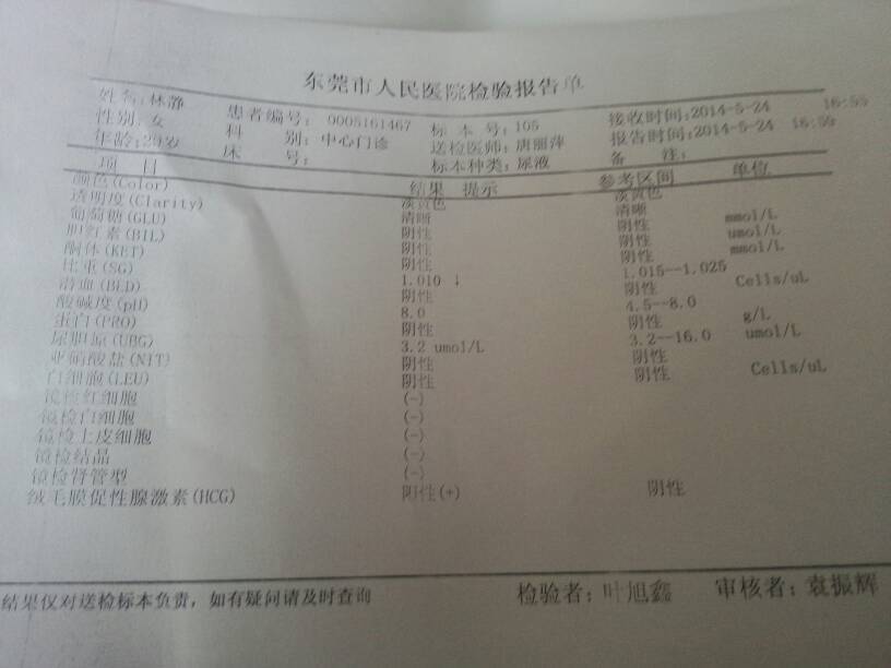 请问是否怀孕?急!!! 请问是否怀孕?急!!! 点击展开 669477jj 2014-05-24 17:30 为您推荐: 其他回答 那就只有等等,急不了。 妇产科邹 2014-05-24 17:55 你是怀孕了。因为绒毛膜促性腺激素一栏是阳性。但没有确定是否是子宫内妊娠,建议你还要打B超。 妇产科邹 2014-05-24 17:40 相关问题 大姨妈不来把我急死了,也不知道是否怀孕,但就是不来… 这个是我检查报告,能看的出是否怀孕吗,急 急 请问怀孕可以吃猪肝吗