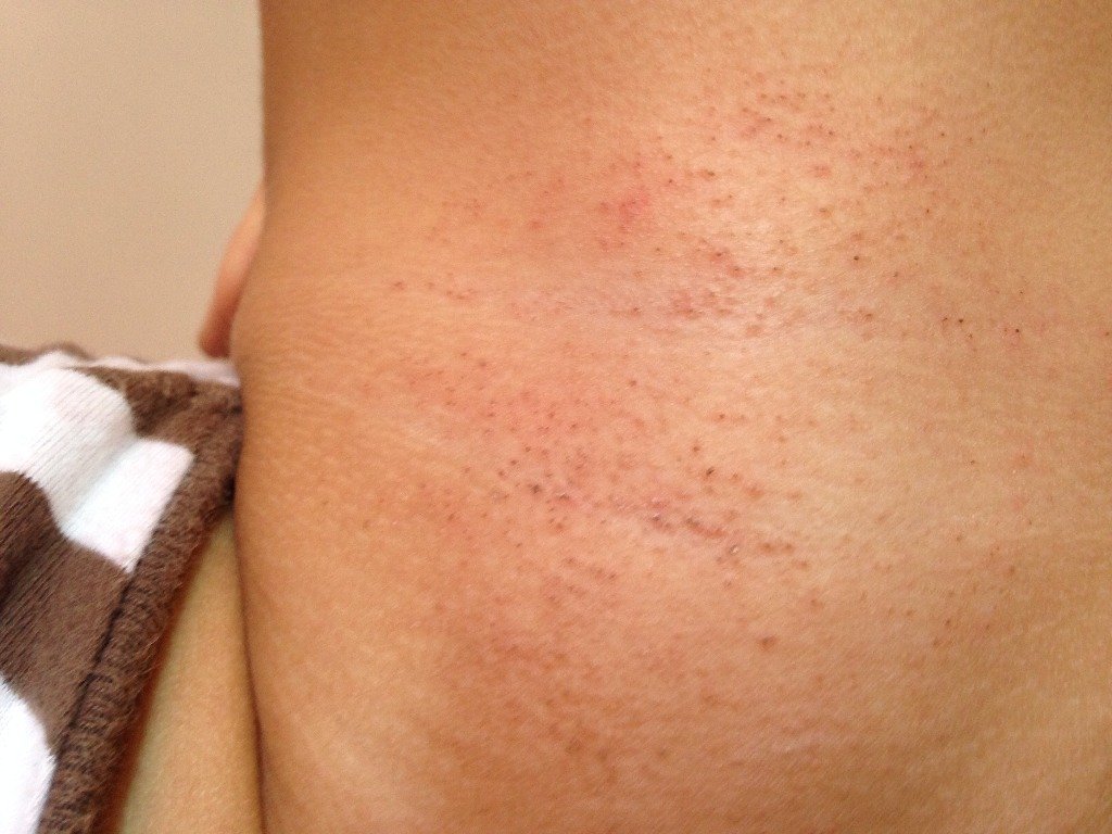 想问下,孩子脖子下面这样是怎么了,这几天才有的,之前有很少一点,用痱子粉抹抹就没了,这几天又长了
