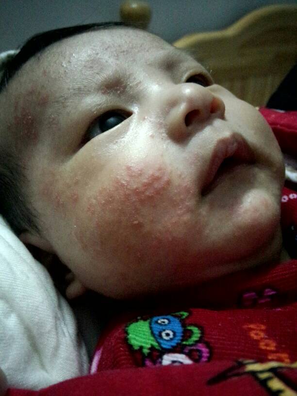 男宝一个月零一天,脸上额头上头发里有照片上的红豆,咋办啊大家帮帮忙,谢谢大家了!