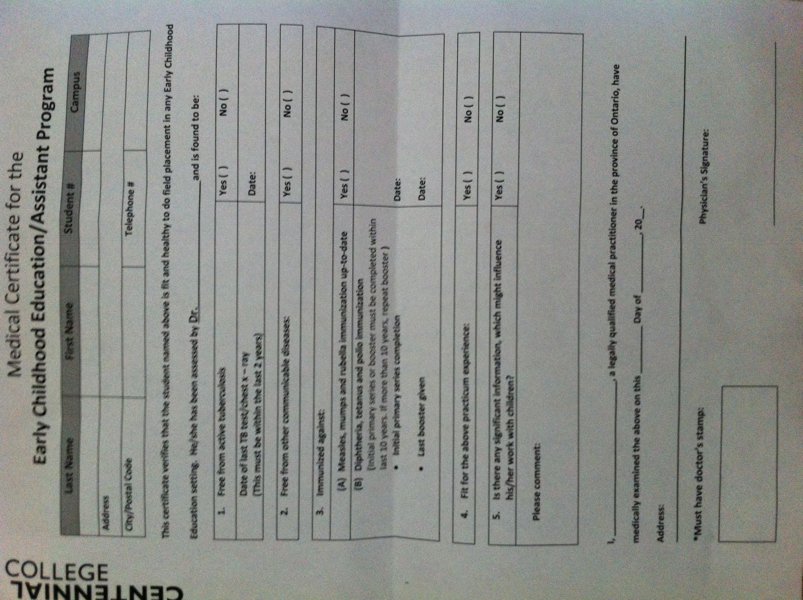 求救 我在多伦多centennial college(百年理工学院)读 early child education(幼儿教育),去哪体检