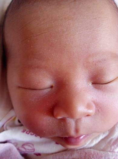 没事的宝宝身上水太多了,要排掉,十天左右会好的,不要抹东西,用清水洗脸就行