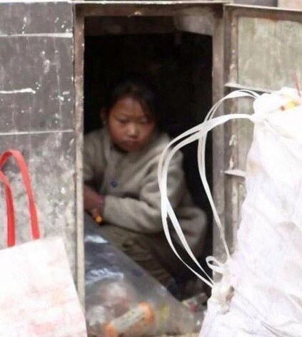 下午下楼倒垃圾看见垃圾箱里一个女孩在里面 然后在搜集里面的剩饭剩菜 从垃圾袋里扒拉出来 然后还穿上