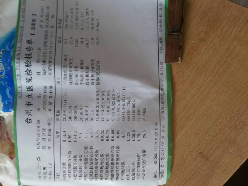 我宝宝11个月了 请各路大医师专家把我下面这张检验报告单分析下怎么回来事?这样的单子一个月多了每次 我宝宝11个月了。请各路大医师专家把我下面这张检验报告单分析下怎么回来事?这样的单子一个月多了每次检验都是差不多样!可他人精神方面看不出有什么不高兴地地方 点击展开 W-D-Z=@ 2014-08-29 17:02 为您推荐: 其他回答 你好,你现在这个时候觉得你还是要自己注意早点找医生看一下的,因为这个单子现在看来也不是很清晰的, 可靠的悠闲80 2014-08-29 19:43 相关问题 请问医师,我这张检验报告是正常吗,希望讲解一下 又没有那位医师听说火(安迪医学检验中心),检验报告可信度高吗 五个半月照四维医师说没事挺健康的,可是六个半月在照比超单子上就说 颜面不清 活动后无好转