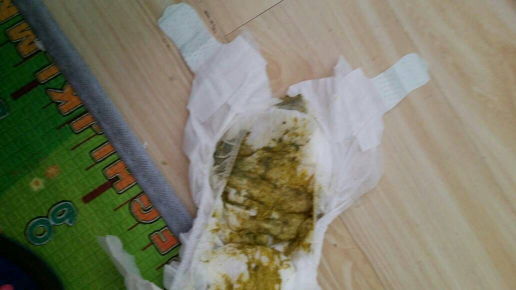 宝宝昨天晚上吐了好多 吐到最后只有吐水了 还是一阵阵的想吐 吐出来的事水 今天拉出来的粑粑是禄带