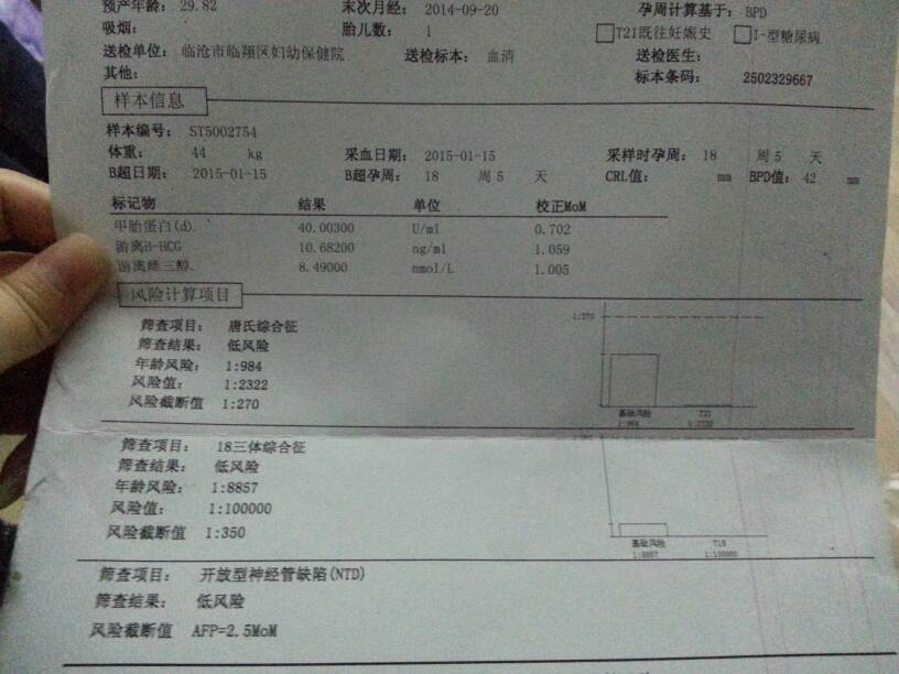 想问问 唐氏筛查正常吗?我看不懂,医生也设说什么 想问问。唐氏筛查正常吗?我看不懂,医生也设说什么。 点击展开 ~\(≧▽≦)/~_vXEj 2015-01-25 23:46 为您推荐: 其他回答 正常的 低风险就是没事 小甜猫 2015-01-26 08:17 低风险就没事的 多多的成长 2015-01-26 07:08 正常的。不正常的话,医生肯定要说的 望北 2015-01-26 00:23 低风险不用担心的。 幸福妈妈乖宝宝。 2015-01-26 00:01 您好,根据您描述的情况,看报告是正常的,不用担心。祝您生活愉快,祝您健康! cn#BBuffaLuGV 2015-01-25 23:56 加载更多 相关问题 这个唐氏筛查报告正常吗?求医生回答! 我24周的时候做了四维彩超,做完医生直接把单给我也没说什么需要什么注意的 我想问问做潍都这样吗? 能看出孩子多大吗?这个数据我看不懂,医生只是告诉我正常,我想知道有多大?