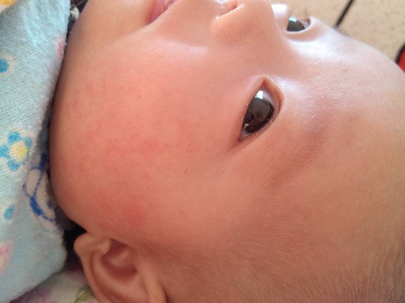 这种情况属于婴儿湿疹。按照中医讲多由于脾失健运、湿热内蕴、复感风邪、风热郁结肌肤而成。主要为变态反应性疾病。发病诱因是;消化不良、胃肠疾病、肠道寄生虫。首先保持卫生清洁、避免搔抓和挤压、避免外用肥皂水或热水洗、建议外用三黄洗剂或炉甘石洗剂、哺乳的母亲不宜食用辛辣食品及刺激性食品。