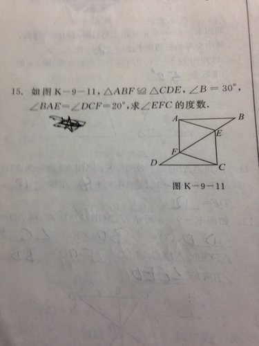 先证明AEF与CEF全等,由此得出AEF角与所求角相等,AEF角为20+30=50度。第二题主要是证明AEO与AFO全等,由此可得出这两个角相等,条件为AE=AF,OD相等,角EAO=FAO,可得出全等
