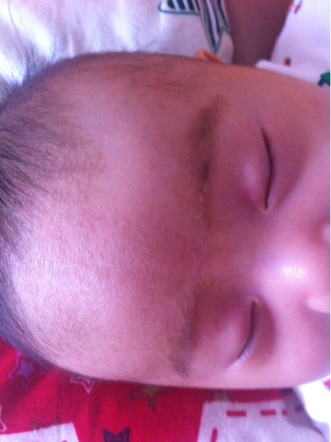 85天的宝宝,最近眉毛处和头上有一层黄色的皮,感觉就和鱼鳞一样 有时候用手也能扣了