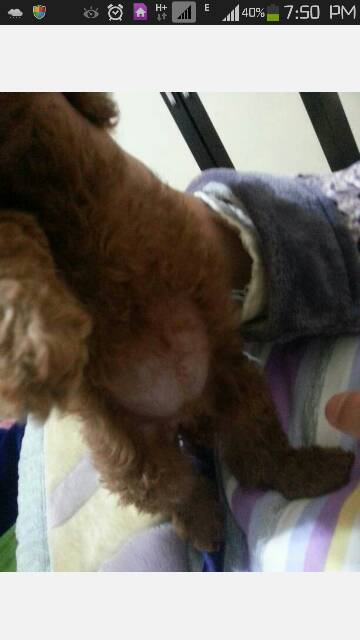 大肚子我家的泰迪一月四日在正规宠物店买的,但是我不解的是泰迪的肚