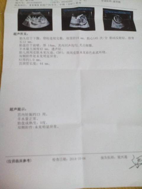 你好,看着报告单上的字迹不是太清楚的,不过看下面的结论应该在这次的检查中是没有问题的,记得按时产检啊