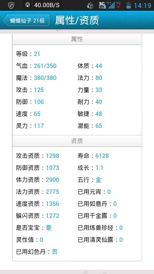 梦幻西游这宝宝值多少钱??? 点击展开 匿名用户 2015-01-06 14:57 满意回答 垃圾市场价300W的货色 按照老区正常 100:1200W 这只顶多就20R上下 郜静涵_J3bj 2015-01-06 15:09 宝宝知道提示您:回答为网友贡献,仅供参考。 为您推荐: 其他回答 不值钱的,成长太低了,而且法BB普遍不怎么受欢迎 匿名用户 2015-01-06 15:11 相关问题 梦幻西游连击宝宝装备值多少钱 梦幻西游命中11,伤害39,力量12的95宝宝护腕估计值多少钱? 梦幻西游宝宝装备95衣服62防御35伤害加23力量值多少钱