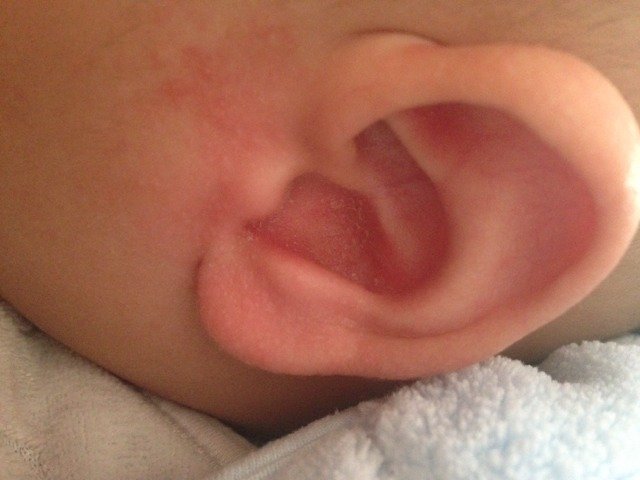 你好,根据你提供的照片看像是湿疹,其表现有成片的红斑或红泡,也有见水泡、白色脓包、可以伴有渗出等症状。建议你不要经常给孩子用水擦拭,不用刺激性的化妆品,可用湿疹膏涂抹。