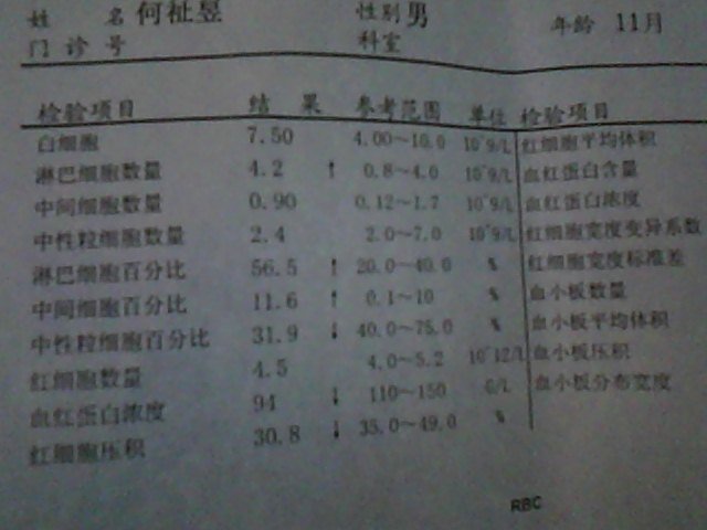你好,对不起,这张化验单上都是乱码,看不清楚,实在是不能帮到这位妈妈俗抗,请这位妈妈认真详细的写上化验单蛇患宝上的项化验值,另哑殊外一般医院的化验单上都有参考值,如果有异常时,可以咨询一下看病的医生。
