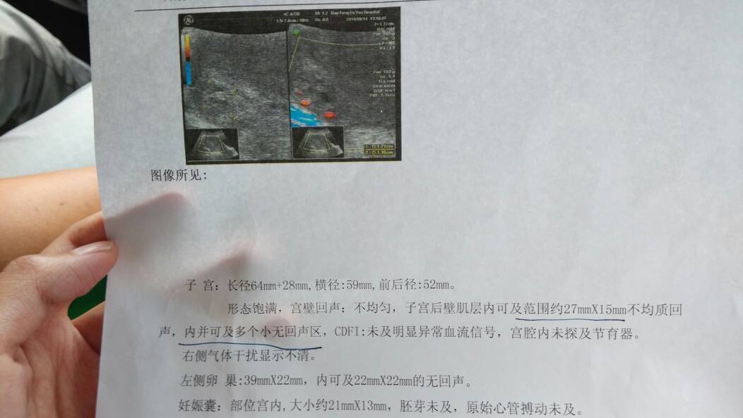 你孕多少周了,当时B超做出来医生没给你解释吗?有回声应该说明有胎囊但应该是回声均匀的,不行换家医院再查查啊