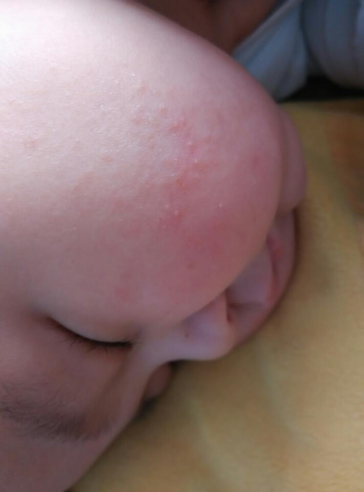 长了有一个礼拜了,就在两个腮上有,红红的一片带着小豆豆,前些天身体不舒服,发低烧来,精神不振,食欲 长了有一个礼拜了,就在两个腮上有,红红的一片带着小豆豆,前些天身体不舒服,发低烧来,精神不振,食欲不佳,现在好多了,可脸上还是有,是什么啊?是不是玫瑰疹?还是湿疹啊? 点击展开 雨睿妈咪 2015-09-16 15:47 为您推荐: 其他回答 这是湿疹,买婴宝 咱继续、任性_unxJ 2015-09-16 22:44 湿疹吧!- 幸福家园我的家 2015-09-16 18:07 过敏了好像 唐爸程妈 2015-09-16 16:02 上医院看看 小坏 2015-09-16 15:52 去看看医生吧 敏敏贰 2015-09-16 15:48 相关问题 宝宝4周4个月了,最近老是低烧反复伴有咳嗽,嗜睡、精神不振、食欲不佳,打了针吃了药还是不见好转,怎么办 小孩六号说脖子有点不舒服 七号去社区医院看查了一下血说白细胞高有炎症 医生以为是腮腺炎 刚开始低烧 宝宝前两天发了低烧 有38度左右 昨天没烧了 却全身长满了像菲子 脸上都有红红的,我该怎么办啊?