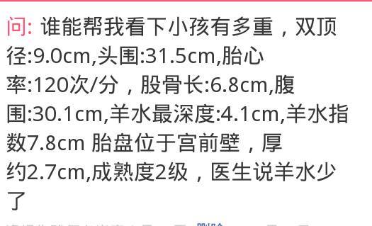谁帮我看下小孩有多重 谁帮我看下小孩有多重 点击展开 人生没有如果, 2014-12-13 09:18 为您推荐: 其他回答 根据现在检查的结果,可以计算,胎儿的体重大约为6斤左右的。平时需要注意休息,饮食需要注意全面,清淡,营养,同时,需要定期进行复查的。 shenglongxiao 2014-12-13 23:37 胎儿体重计算器 哎吆_neLW 2014-12-13 18:47 应该是个男孩吧 保持、微笑_TtAC 2014-12-13 13:53 六斤多。。 小木偶 2014-12-13 11:23 大约六斤多点 不懂宽容 2014-12-13 10:38 加载更多 相关问题 怎样看小孩有多重 有经验的宝妈帮我看下 宝宝大吗?宝宝现在有多重 谁能帮我看一下小孩大概有多大?