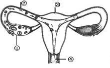 下图是排卵、受精、受精卵发育、植入子宫内膜的连续过程,试回答下列问题。 (1)填写下列标号的器官名称: ①________②________③________ (2)精子和卵细胞结合的场所是__________。 (3)胚胎发育的场所是_________。 (4)器官①的功能是_________和_________。