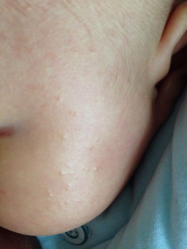 宝宝一个多月,开始只是几颗现在长了好多,像脂肪粒一样的痘痘,前两天打疫苗的时候医生说没关系,我还是