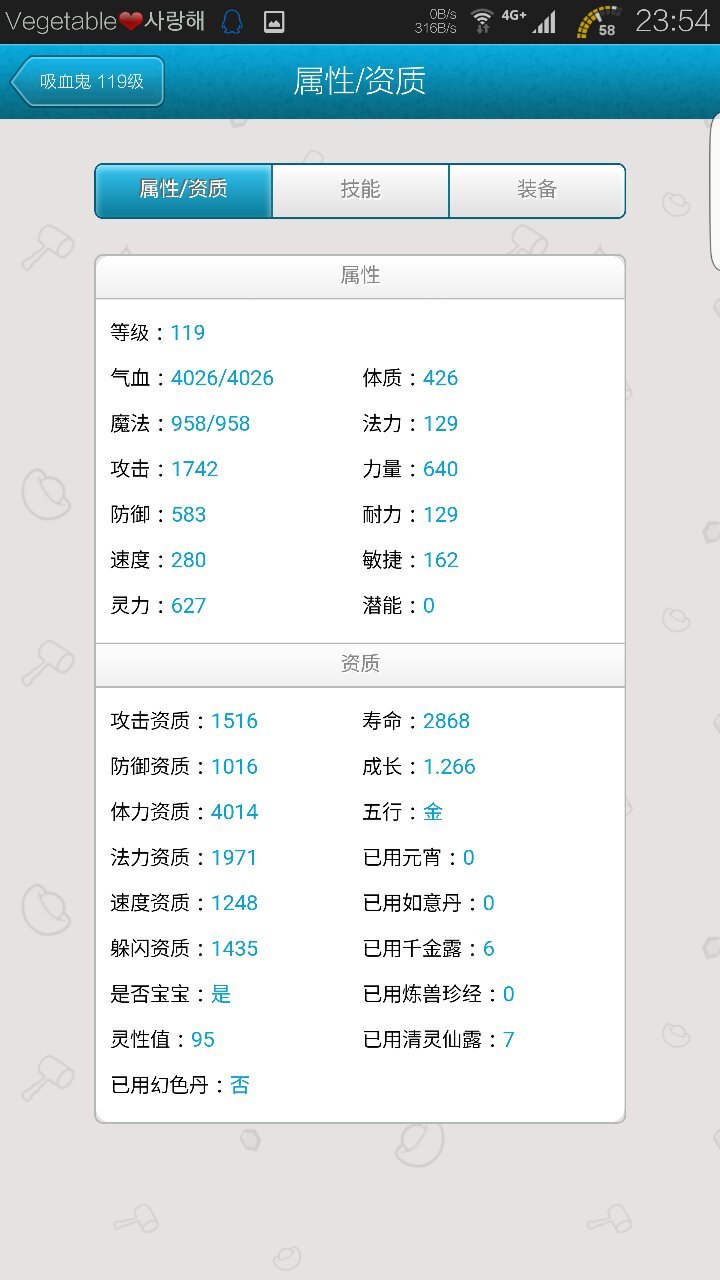 梦幻西游宝宝 为什么只差了4级 看起来潜能点数差了那么多呢,119的力量和体质加起来都1000多点 梦幻西游宝宝 为什么只差了4级 看起来潜能点数差了那么多呢,119的力量和体质加起来都1000多点了,给50分请认真回答 点击展开 匿名用户 2016-01-24 23:03 满意回答 进阶,千金露,宝宝装备的附加属性都会影响宝宝潜能的总和 匿名用户 2016-01-24 23:12 宝宝知道提示您:回答为网友贡献,仅供参考。 为您推荐: 其他回答 等鬼将长起来你就懂,吸血鬼没潜力的 匿名用户 2016-01-24 23:05 相关问题 梦幻西游宝宝进阶119宝宝最多加多少潜能点 梦幻西游有个119J鬼将 善恶 高必 夜战 攻1400+ 防1200+速度1000+ 是宝宝 成长忘了#24 攻击1500多少钱? 梦幻西游129龙宫秒6修11 技能125灵力1018带40到50的小孩秒出来没有1000 秒不死小怪怎么办