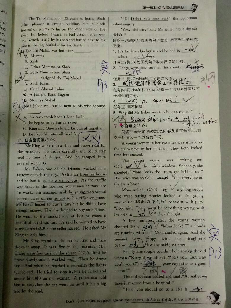 初三英语,两道大题都有瑕疵,第一大题的2,3,5 孩子答的和参考答案有别 我也不会有劳学霸和老师了 初三英语,两道大题都有瑕疵,第一大题的2,3,5。孩子答的和参考答案有别。我也不会有劳学霸和老师了感谢大家的帮助。 点击展开 匿名用户 2016-08-07 11:34 推荐回答 参考答案 匿名用户 2016-08-07 12:06 宝宝知道提示您:回答为网友贡献,仅供参考。 相关问题 龙宝宝陈姓男孩2012-12-24 12:35出生,有劳精通八字五行的老师帮忙取名,辛苦各位! 我的孩子都11岁了而且是个女孩老师总是说她上课不认真听讲、成绩总是提高不上去、老师说她很聪明就是不 孩子在学校学习成绩一般在下中,非常想得到老师表扬和肯定 但最近老是不但没被表扬反而被老师取消了用钢