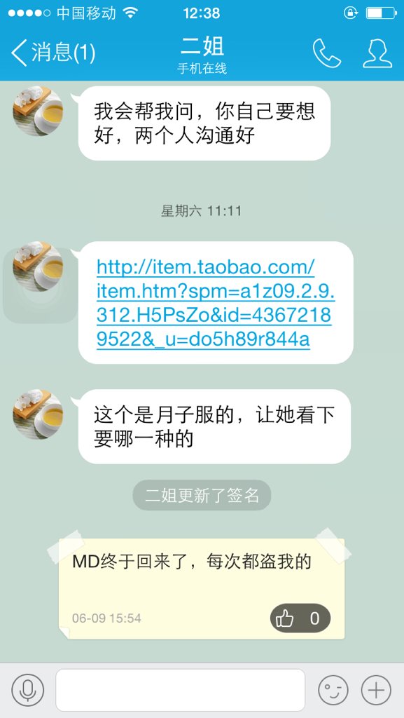 这是我老公的二姐,她跟我老公聊天让我老公告诉我这是她朋友推荐的月子服,但是她说话的语气用的称呼是她