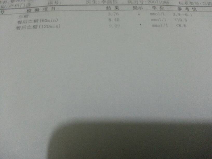 孕23周+,饮葡萄糖水后测得此数值,属于妊娠糖尿病吗? 点击展开 manyxuling0 2014-01-24 20:36 为您推荐: 其他回答 病情分析: 你的测试的数值没有达到糖尿病诊断的标准 指导意见: 餐前的大于7.1,餐后的大于11.1才是 匿名用户 2014-01-24 20:40 相关问题 孕28周,喝50克葡萄糖水,一小时后测得值为9 0,参考值为〈11 1,请问是不是有妊娠糖尿病,需要再做检查 孕24周得妊娠糖尿病胎儿比实际周数小了一周!怎么办?医生叫控制饮食,请问对胎儿发育还会有什么影响吗 孕妇喝葡萄糖75克要兑多少水喝呢?喝葡萄糖水多了会不会容易导致糖尿病的啊?