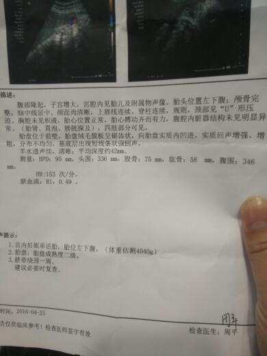 测量bpd:95mm头围336mm股骨75mm肱骨58mm腹围346大概小孩有多重 点击展开 姬夜仙 2016-04-25 13:13 满意回答 你好,胎儿的的体重亲安大概3300克左右最狗殖,胎儿体顿辨重只是估算有一定误差。 cn#BaVLLGGBGa 2016-04-25 15:35 宝宝知道提示您:回答为网友贡献,仅供参考。 相关问题 哺乳期乳腺炎的症状表现有哪些?最近哺乳期,乳房有肿块,有点低热,乳腺炎的症状表现有哪些?应该怎么办? 产后恶露有哪些类型?为什么产后会有恶露不尽啊? 34周,胎位不正,做纠正胎位的操会脐带绕颈吗?