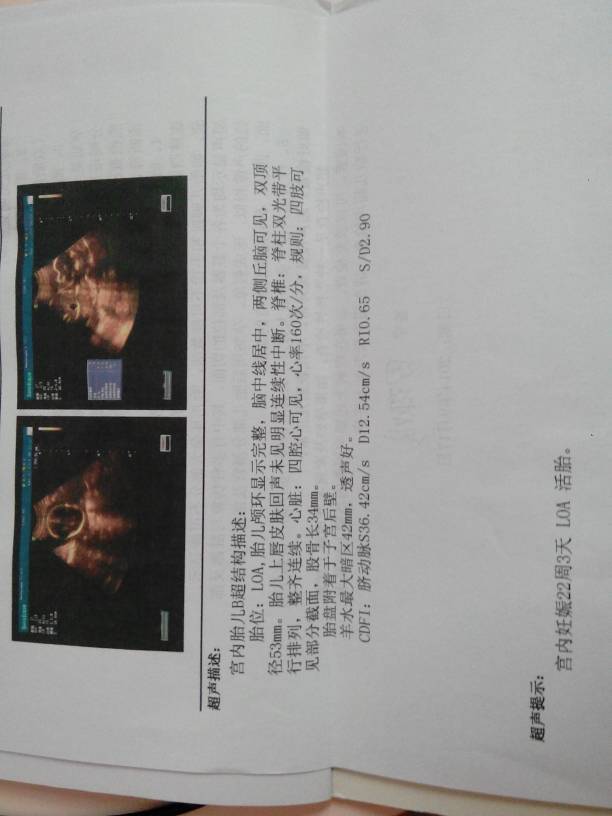 请医生帮忙看看我今天照的b超有没有异常? 请医生帮忙看看我今天照的b超有没有异常? 点击展开 岁月之沉淀 2014-09-17 16:08 为您推荐: 其他回答 根据你的B超显示的数据都在正常范围,有脐带绕颈,建议你定期孕检。 威县高兰云 2014-09-17 16:11 基本情况还是比较好的,但是胎心率有一点偏高,正常的胎心率的范围在120-160之间。 群岛舟山 2014-09-17 16:10 相关问题 有木有专业医生帮忙看看这B超单有没有问题? 今天去检查做了B超,都有十周了,5月18号还吃了避孕药,不知道对BB有没有影响,好担心,医生建议我
