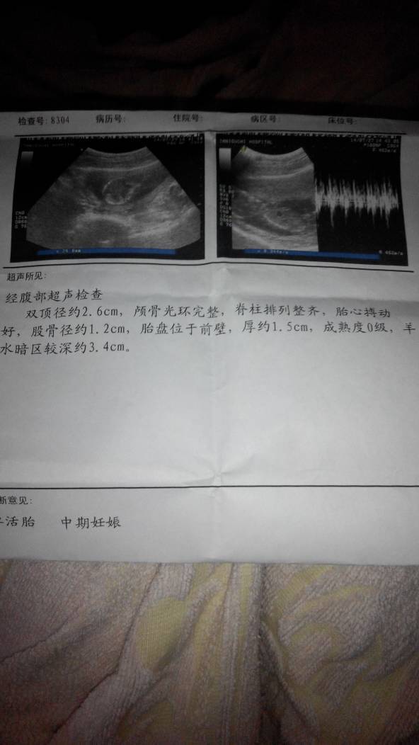 你好,根据胎儿双顶径等判断怀孕时间并不是很准确,受到胎儿本身发育大小影响。结合你的B超检查,相当于怀孕14周左右,也就是说相当于末次月经在四月20左右,预产期估计是在明年元月27后前后。怀孕中期适度有氧活动,均衡营养,定期产检。