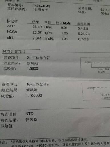 懂的宝妈帮我看看唐筛报告 看男女啊,谢谢咯 懂的宝妈帮我看看唐筛报告。。看男女啊,谢谢咯 点击展开 小小贺的麻麻 2014-06-11 15:39 为您推荐: 其他回答 像这种筛查是用来检查孩子是否有先天性畸形的,是看不出来性别的。 AA天下大同 2014-06-11 15:45 相关问题 麻烦医生帮我看看我的唐筛报告 谢谢!急! 宝妈们和各位医生,麻烦你们帮我看看下午超声报告单,谢谢了 大家帮我看看我怀孕36周的B超报告吧,不懂的别乱说,谢谢!!