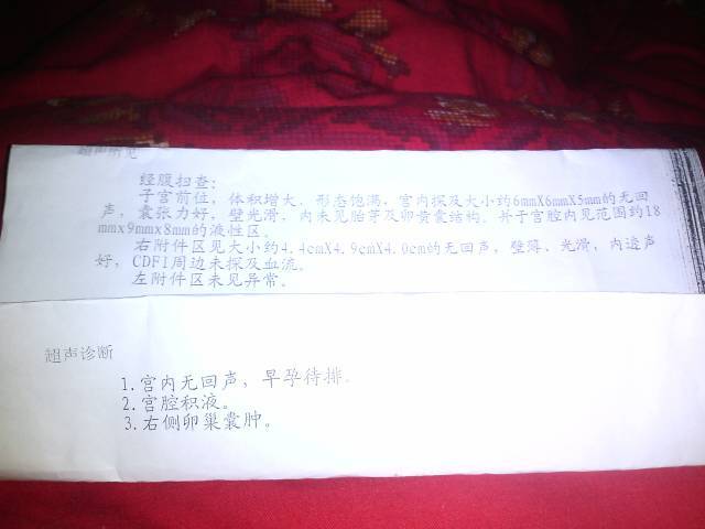你可能是太早去了,我31天去和你一样单子,自己验了是怀孕,现在都40多天了,过几天在去