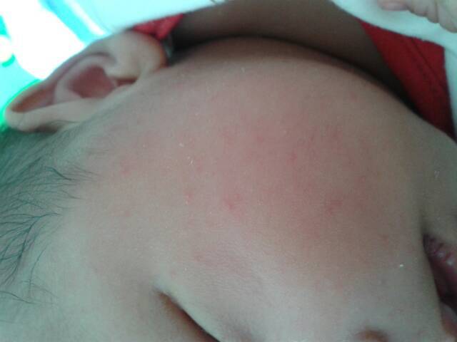 像湿疹,我家宝贝当时也是脸上有几颗,我用香油给他擦的,几天就好了