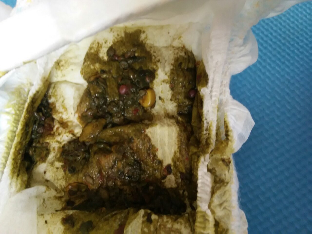 有图,慎入,宝宝九个多月了,最近拉粑粑发黑发绿是怎么回事,经常给她吃水果,西红柿葡萄和苹果,拉出来 有图,慎入,宝宝九个多月了,最近拉粑粑发黑发绿是怎么回事,经常给她吃水果,西红柿葡萄和苹果,拉出来的粑粑里有很多都没消化 点击展开 北北嘛嘛 2016-07-08 14:41 为您推荐: 其他回答 祝宝宝健康 昕宇.123 2016-07-08 14:43 。。。。。 156*****127_yhVU 2016-07-08 14:41 相关问题 孕妇每天吃一个苹果一个香蕉一个桃一个西红柿,15颗葡萄!偶尔加一片西瓜!多吗? 怀孕可以吃西红柿,葡萄,梨,苹果,橘子吗?
