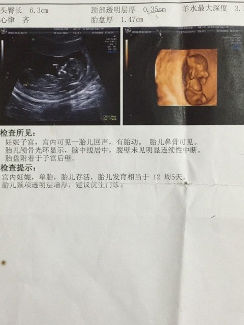 我三月九号拍的nt说颈部增厚0.35,图片是报告单,挂优生门诊说这厚度只能做羊水穿刺,本来打算换个