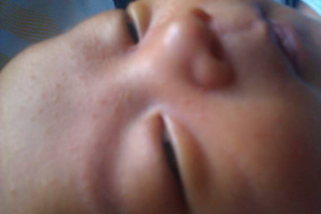 湿疹的可能。尽量寻找发病原因并去除之,注意调整饮食,大人小孩都要注意忌食辛辣刺激,避免进食易致敏的物品,如酒类,海鲜贝类食物应禁用、以清淡饮食为好;尽量减少外界不良刺激、如手抓、外用肥皂、热水烫洗等;衣着应较宽松、轻软,避穿毛制品或尼龙织品。用湿疹锌软膏擦患处试试。