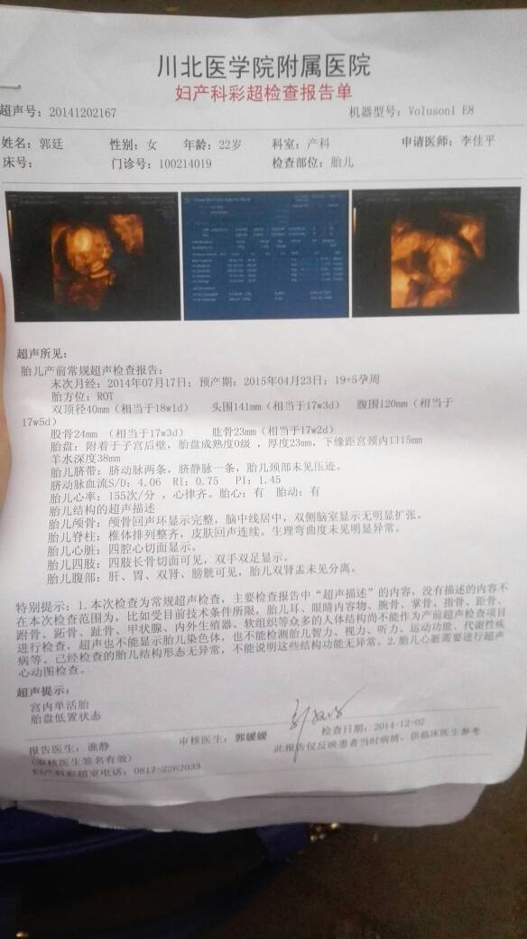 今天检查,我月经一直不准,麻烦帮忙看下宝宝到底好大 还有就是怀得比较低有没影响????谢谢 今天检查,我月经一直不准,麻烦帮忙看下宝宝到底好大。。还有就是怀得比较低有没影响????谢谢 点击展开 无言的对白 2014-12-02 18:14 为您推荐: 其他回答 自己觉得没什么不适就好了 臭~艾'美 2014-12-03 12:22 这是第几周拍的? *唯爱燕子”… 2014-12-02 20:23 你这么早就四维啦 麦谷道坡 2014-12-02 20:07 后期会升上去的,我也是低呢,自己平常小心点就行了 麦谷道坡 2014-12-02 20:07 祝宝妈好孕 975414378 2014-12-02 19:49 加载更多 相关问题 末次月经2月6号,这个b超是5月6号做的麻烦医生结合b超看看我宝宝到底多少周?感谢 这是我今天检查的我看不懂,问医生她也不耐烦,麻烦哪位懂的帮我看看宝宝现在有几斤了,我预产期是7月2 从月经没了后,血一直没干净过,一直到现在可今天试纸测试竟然怀孕了,宝宝能要吗?
