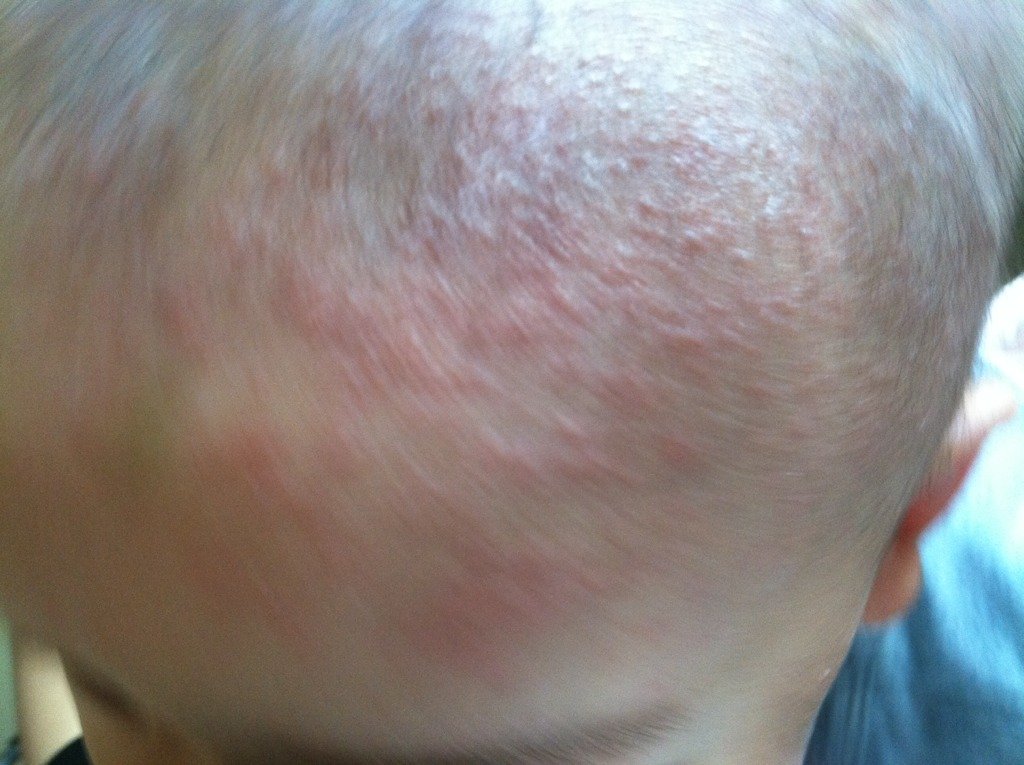 以你家宝宝的图片来看宝宝和可能是由于湿疹导致的,或者是长痱子了,, 如果是是针就会有明显的瘙痒,痱子瘙痒就不是很明显。 你最好是带宝宝到医院皮肤科诊治看是由于什么,引起的, 现在可以用炉甘石洗剂外用治。