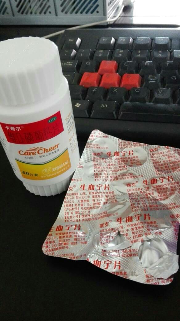 我是孕妇去医院做检查~两个医生给我配了四种药该怎么吃啊?补血的(瑞克生血宁片),(卡奇尔维D2磷葡