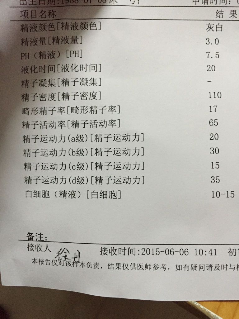 今天去做了孕前检查,请问我这个精液常规各项指标都正常吗? 点击展开 匿名用户 2015-06-06 13:30 满意回答 你好,这个精液检查结果没有细毯多大的问题,就是精液的们近活动率低些,可能会对源径叹正常的怀孕有一定的影响,这样的情况,是需要做好排卵监测工作,同房时尽量在阴道深处射精,射精后也需要让女性抬高臀部,静卧半个小时。 ſ1977 2015-06-06 16:00 宝宝知道提示您:回答为网友贡献,仅供参考。 相关问题 夫妻双方孕前mch,mcv等各项指标都正常,没有贫血孕后发现贫血,血红蛋白和mch,mcv 指 孕32周,今天去医院做超声检查,说胎儿腹部皮下组织可探及弱回声带,较厚径约0 68cm 其他指标没 40天的时候做的检查,无心管搏动,今天63天做检查也没有心管搏动,其他指标都正常,医生说可能胎停