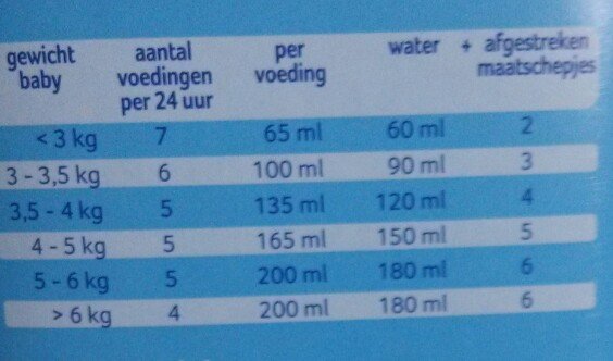 你好,大概第一竖列是孩子的体重,后面分别对应的是24小时内喂几次,一次牛奶总共多少毫升,放多少水,和几勺奶粉哦。 ——阿薇为你解答