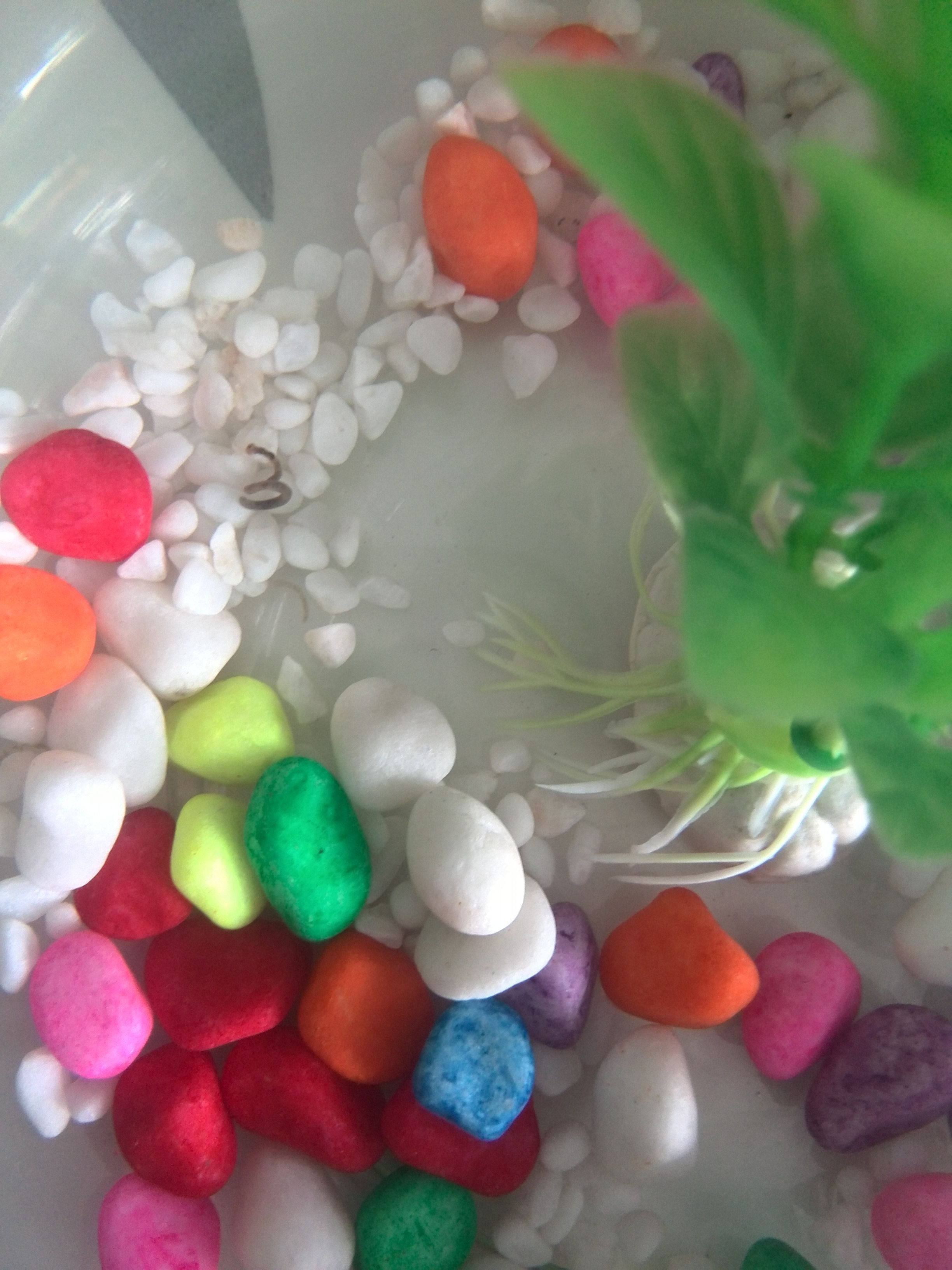 怀孕的孔雀鱼我把它跟别的鱼隔开了 前天发现肚子那里好像有划痕 有点血之后刚才看见鱼缸里有这个东