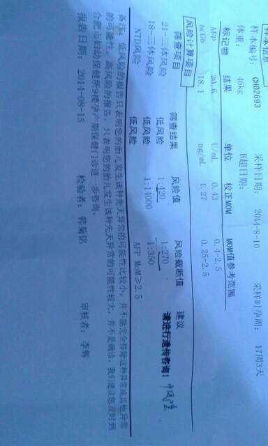 这是唐氏筛查单,医生说我风险高了,需不需要做进一步检查,各位麻烦帮我看一下,谢谢