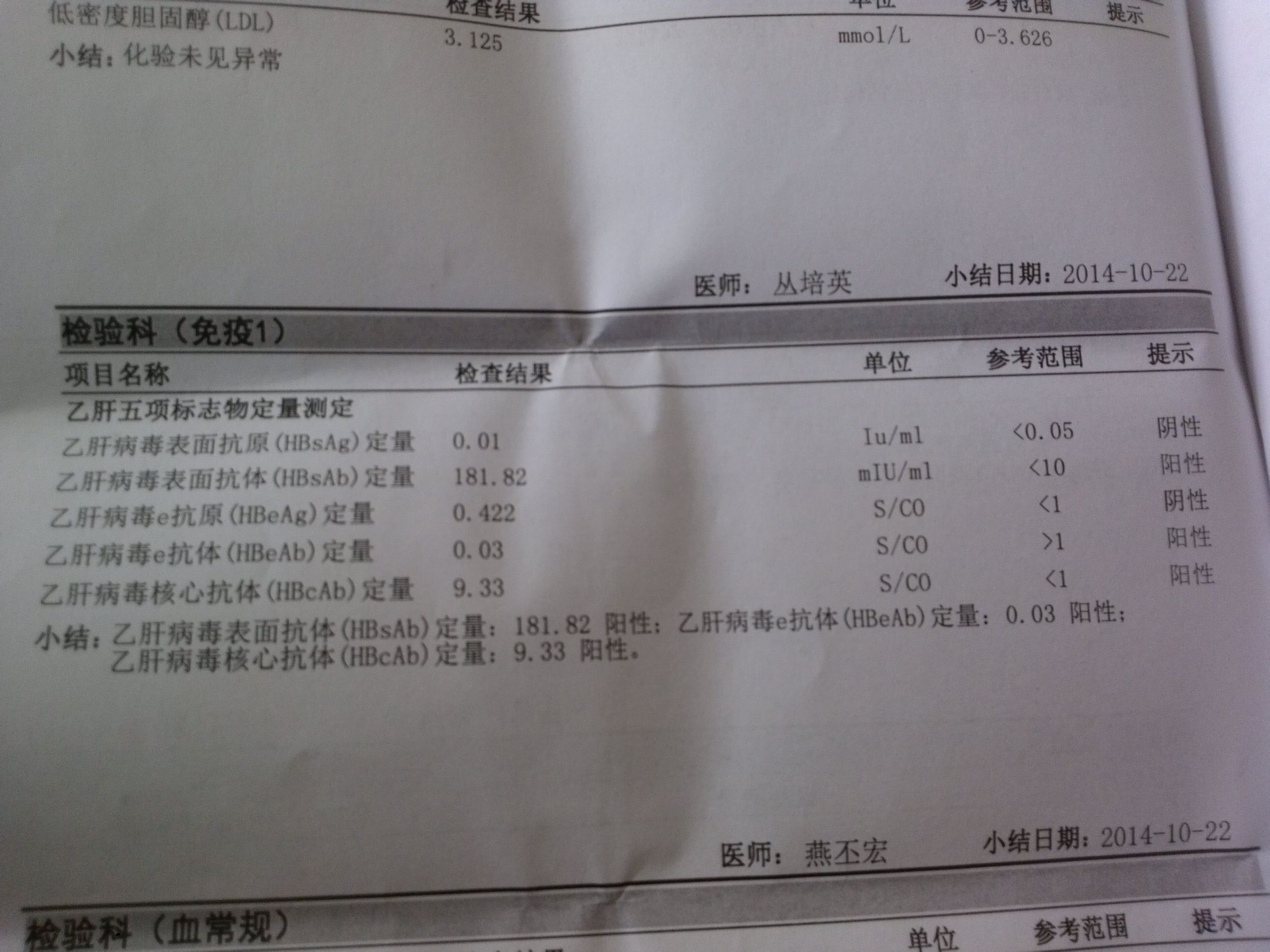 以下是刚刚做的体检,看了肝功能出现三个阳性,很害怕,是不是乙肝小三阳?不知道有没有事,准备要小孩呢 ,怎么办?需要治疗吗? 点击展开 匿名用户 2014-11-15 11:19 为您推荐: 其他回答 你好,乙肝主要是通过血液、性、母婴等传播,所以,是有传染的可能的,不过如果是体内有乙肝抗体的话,传染的交流就会降低很多,你体内有抗体吗?有注射过乙肝疫苗吗? 李晓雪医生 2014-11-16 09:31 相关问题 关于乙肝小三阳,急 我妈妈最近体检查出乙肝小三阳,但肝功能和DN 有没有孕妈妈是乙肝的,我小三阳,孕9周,检查dna和肝功能,谷丙转氨酶44,其他正常,这个结果严重吗?我现在该怎么降转氨酶又不影响胎儿呢?以后会不会还继续上升? 1岁半宝宝,乙肝小三阳,肝功能异常,怎么办?