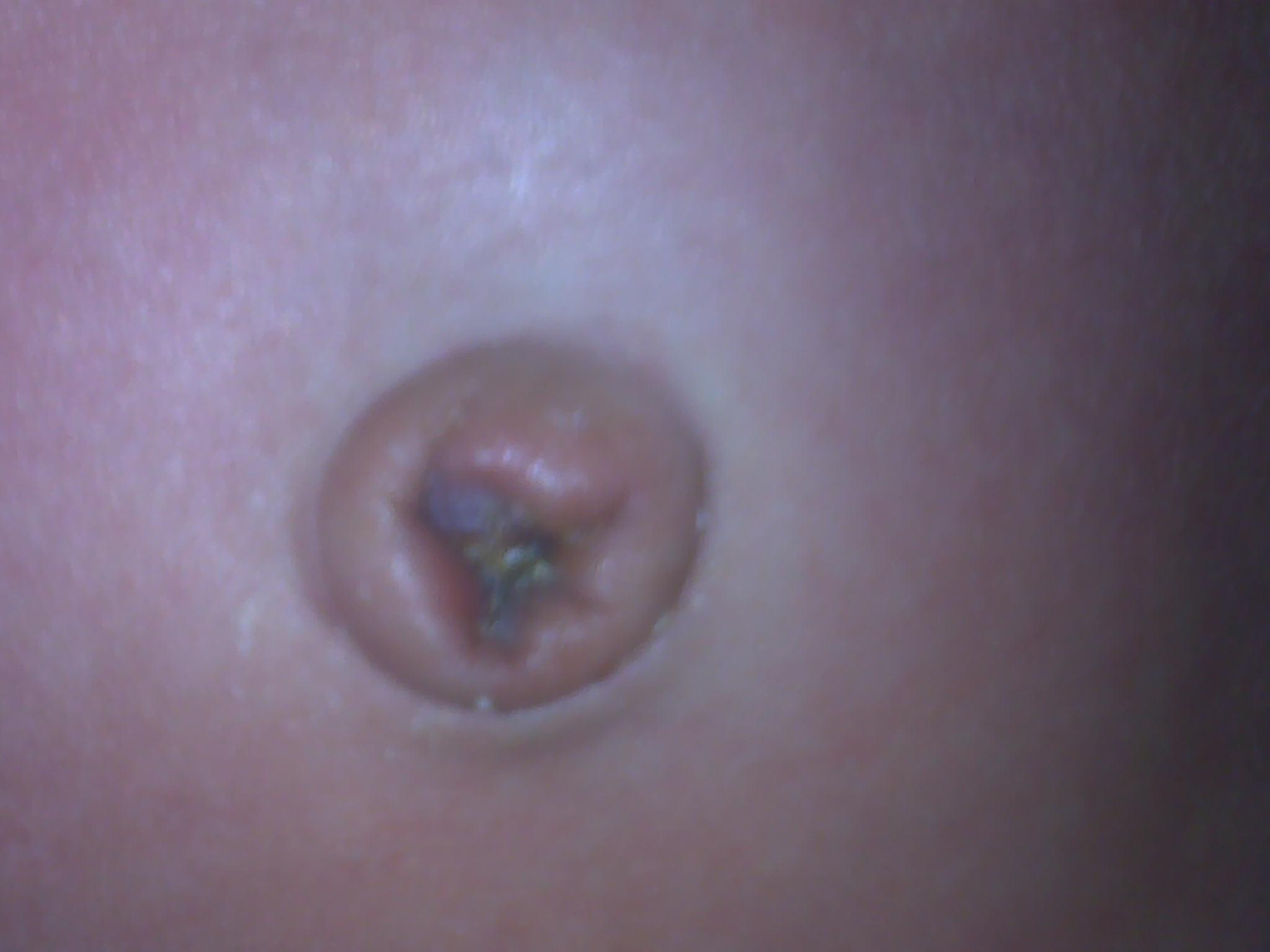 宝宝16脐带才掉,掉了里面有黄色的液体,用酒精棉擦了撒了些消炎药粉末,里面结疤了怎么回事?急急急
