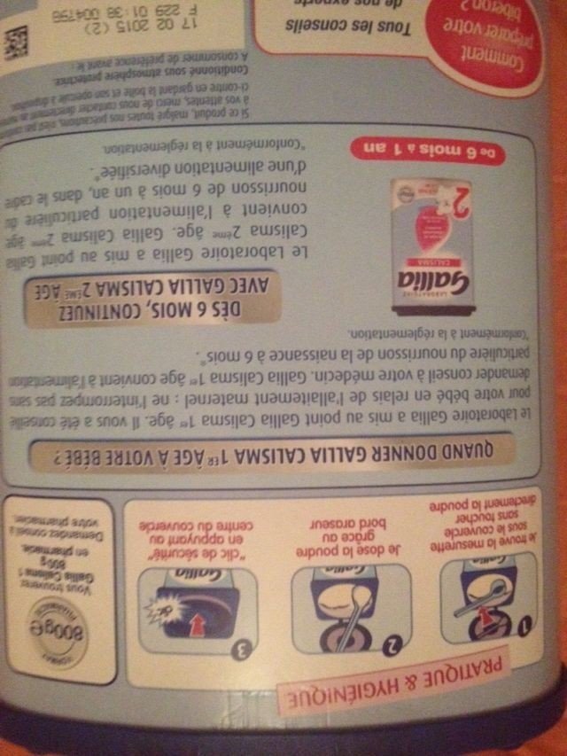 段落译文如下: 高卢佳利雅奶粉1段:实用、保健 在奶粉盒盖下有量杯,拿的时候不要触到奶粉。用量杯盛奶粉,量与剂量线一齐。盛好后,从盖中心向下压盖,听到"喀哒"声即安全盖住。 什么时候给宝宝喂食高卢佳利雅奶粉一段。 高卢试验室调制高卢佳沙抹利编卜雅奶粉1段。试验室建议与母乳交替使用:建议咨询医生。高卢佳利雅奶粉1段尤其适用于出生到6个月的婴儿食用。“符合相关规定” 自6个月到1岁,可继续使用高卢佳利雅奶粉2段奶粉 高卢试验室调制高卢佳利雅奶粉2段。高卢佳利雅奶粉2段适合6个残局生月到1岁的婴儿使用,这时婴儿也可食品多种饮食。 保质期到2015年2月17日。