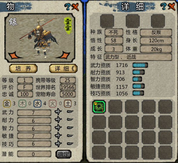 我的这个桃园骷髅侍御宝宝怎样,对于性格我无语了 点击展开 匿名用户 2012-11-15 17:22 满意回答 能力太差了,没啥用,20多级也就是过度劣间否,随便做做日常任务35的时候换个再造死碗点士或者野猪,等45再吉了好好弄个宝宝就可以了 匿名用户 2012-11-15 17:42 宝宝知道提示您:回答为网友贡献,仅供参考。 为您推荐: 其他回答 请果断丢掉 匿名用户 2012-11-16 09:30 相关问题 桃园骷髅侍卫宝宝怎么加点 桃园中常侍宝宝可以抓么? 桃园宝宝可以改性格吗