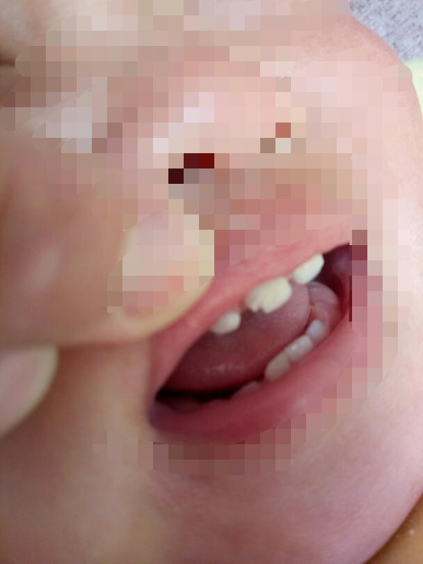九个月的宝宝长了八颗牙,牙齿上有黄的上面不平像有洞洞一样,今天早上我一看前面两颗门牙上有一个掉了一